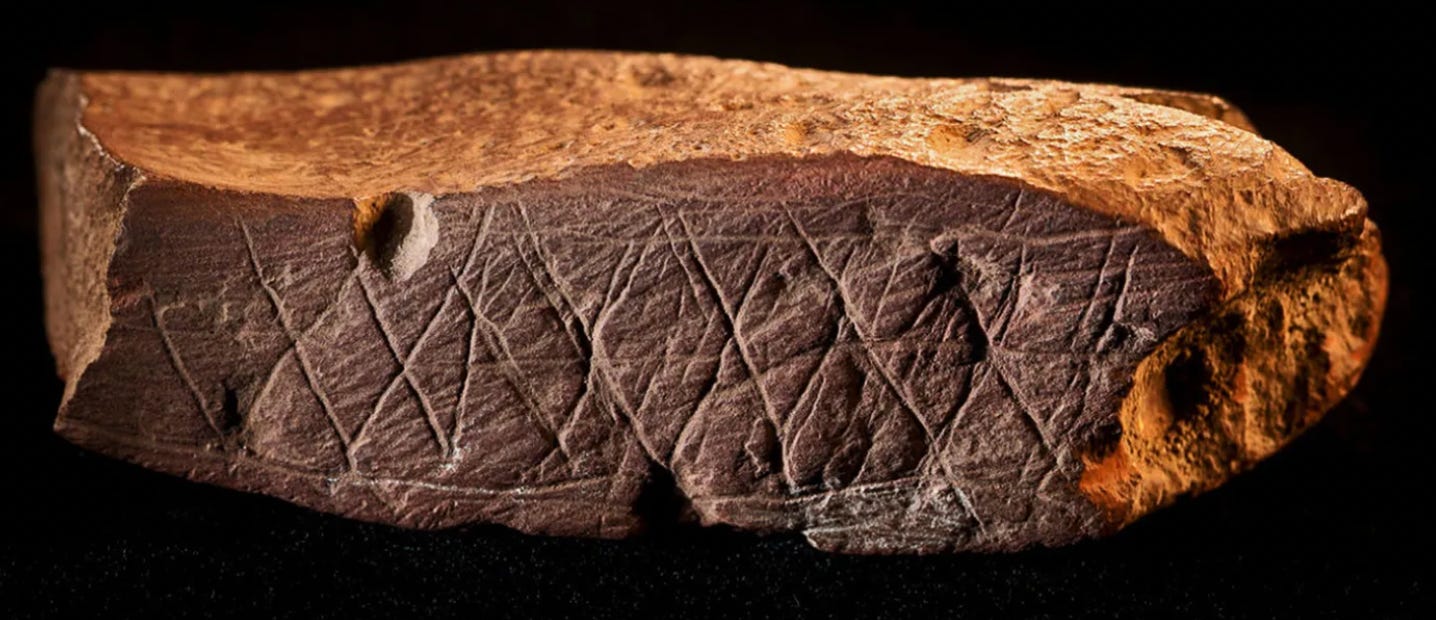 Il est au moins possible que la plus ancienne preuve connue de la pensée symbolique humaine soit un suivi de cycle menstruel. Les ocres de Blombos, découvertes en 1991 dans une grotte d’Afrique du Sud, constituent un ensemble de pierres d’ocre rouge gravées datant d’entre 100 000 et 75 000 ans. Plusieurs d’entre elles présentent des motifs géométriques hachurés, dont la plupart comptent de manière régulière entre 28 et 31 marques, correspondant ainsi approximativement à la fois au cycle menstruel humain et au cycle de lunaison. Si nous jugeons pertinent de déterminer lequel de ces deux phénomènes naturels les ocres enregistrent, cela reflète peut-être simplement la distance qui sépare notre monde mental de celui des graveurs de ces pierres. Il se peut qu’ils ne distinguaient pas du tout deux phénomènes.