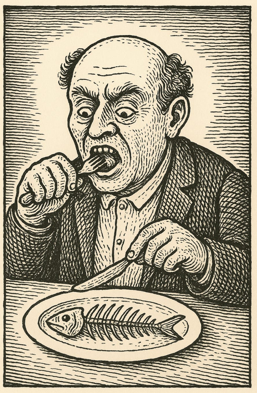 Trapping gristle and bone of carp, roughy, and mullet,